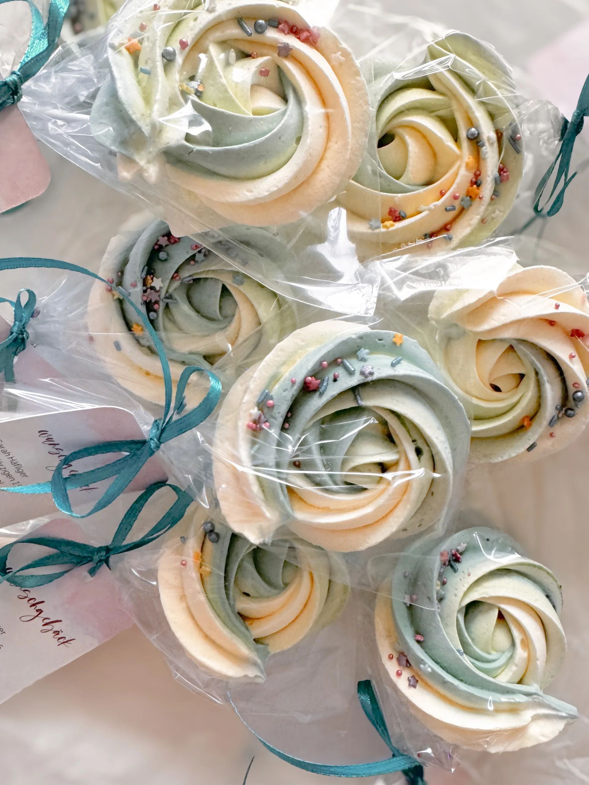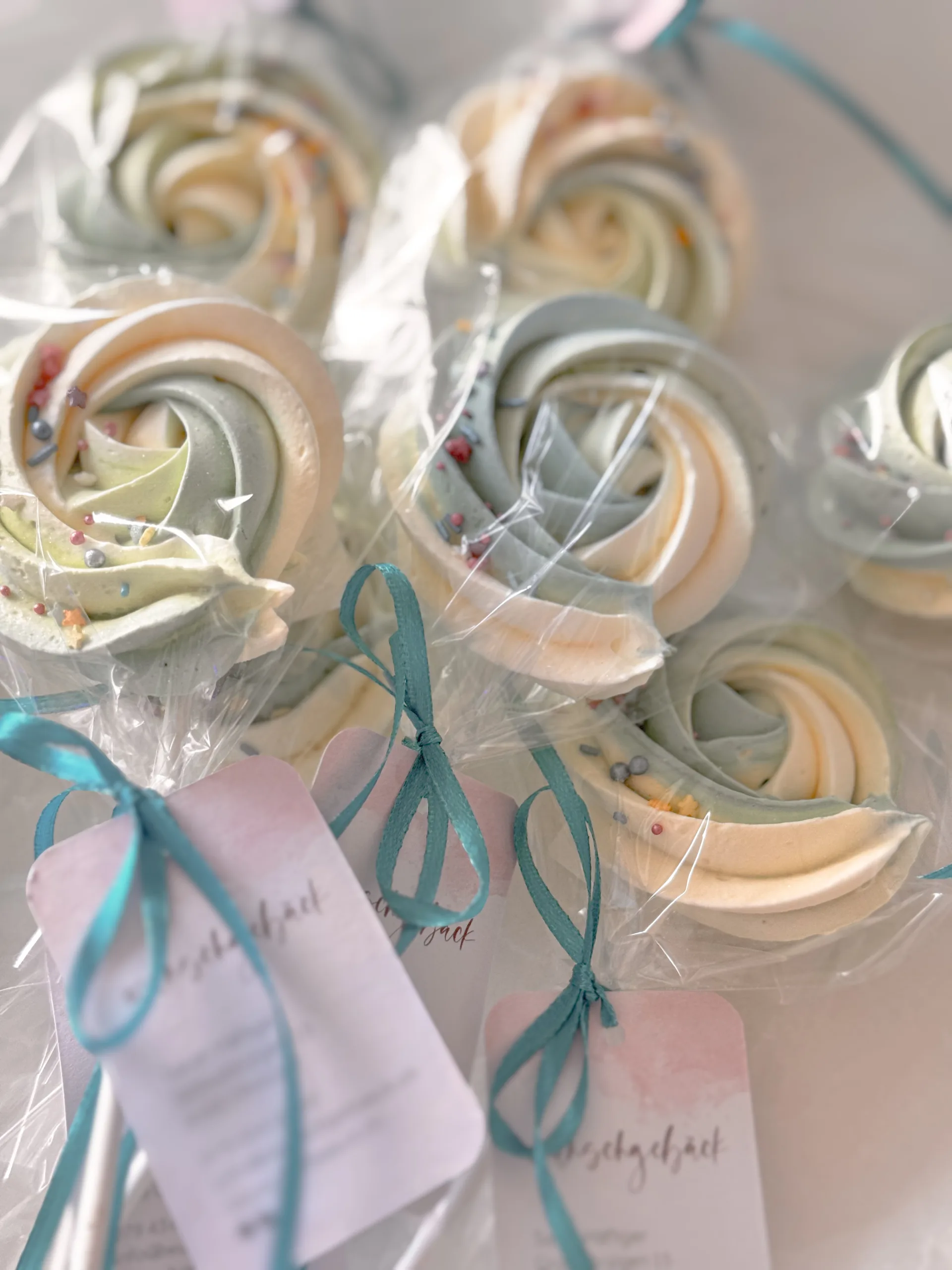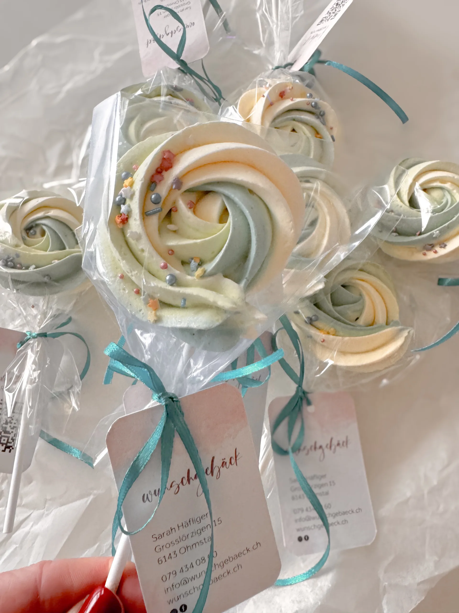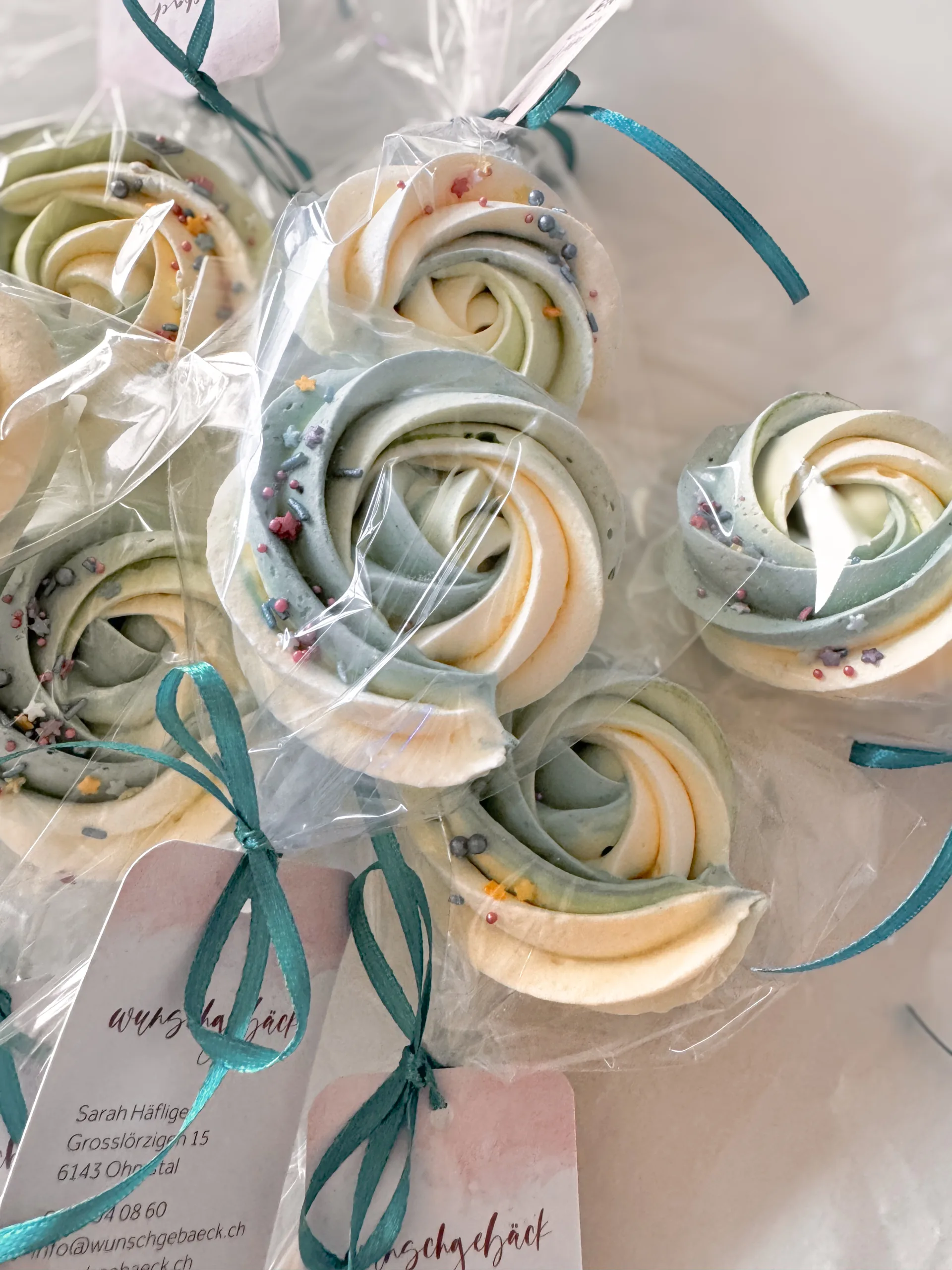 Zutaten Meringues: Zucker, Eiweiss (aus Bodenhaltung), Aromen